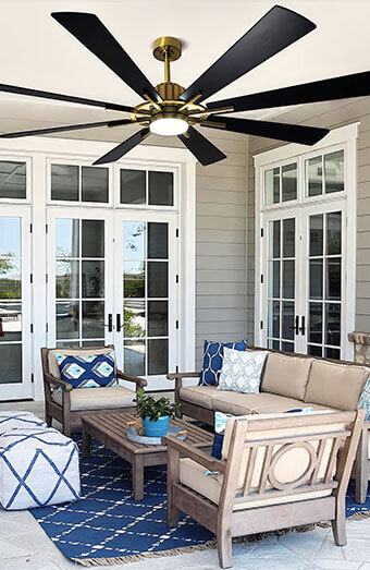 Professional installation of weather-rated ceiling fans for alfresco areas, patios, or balconies. Designed to withstand humidity and outdoor conditions.